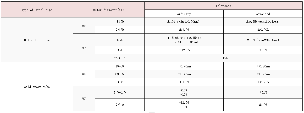 After consultation between the supplier and the buyer, and in the contract, it can produce steel pipes with deviations from those specified in Table 1.
